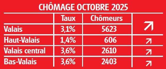 Les trois grandes régions du canton sont concernées par cette hausse. En effet, le Haut-Valais et le Valais central voient leur taux de chômage augmenter de 0,2 point et le Bas-Valais de 0,1 point.