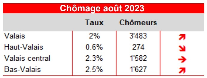 Par rapport au mois précédent, le canton du Valais a connu une évolution de son taux de chômage semblable à celle de la Suisse (+0.1 pt).